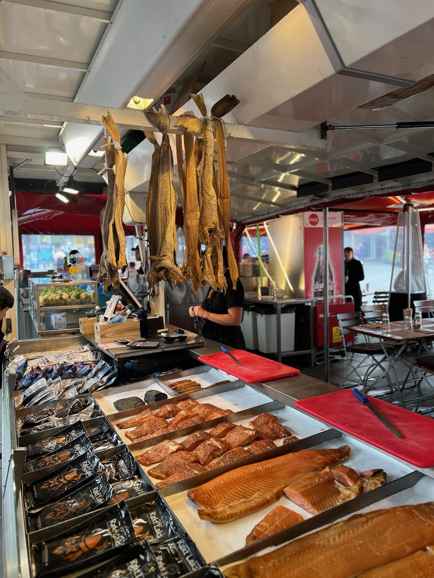 We continued on to the Fish Market which is located in the heart of the city between the fjords and Bergen’s 7 mountains. Historically this was a meeting place for merchants and fishermen. The market had plenty of seafood, vegetables, and fruits.