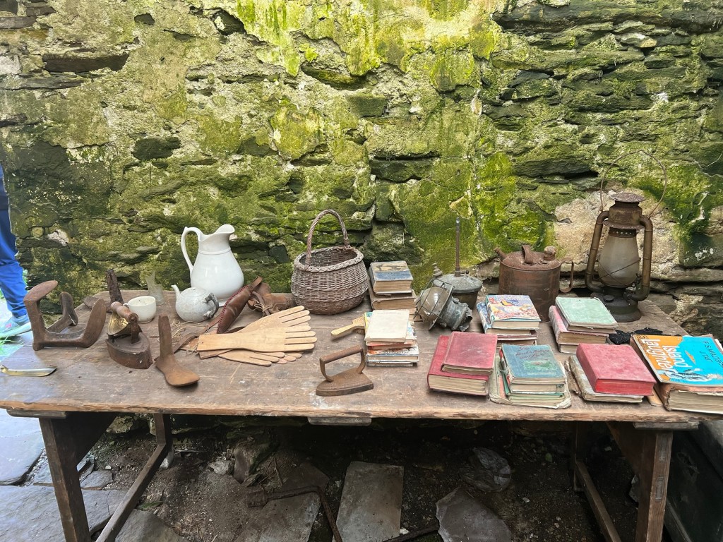 Our next stop was a visit to a 300-year-old house where we learned about the Scottish way of life dating back to the 1700s. Walking inside you realize how rough life was and how that you would not have any personal space. Everything centered around the fireplace and kitchen. The climate is very wet, windy and cold. There isn’t a lot of trees and lumber so peat is used for heating purposes, but requires you to carve it out then dry it.
