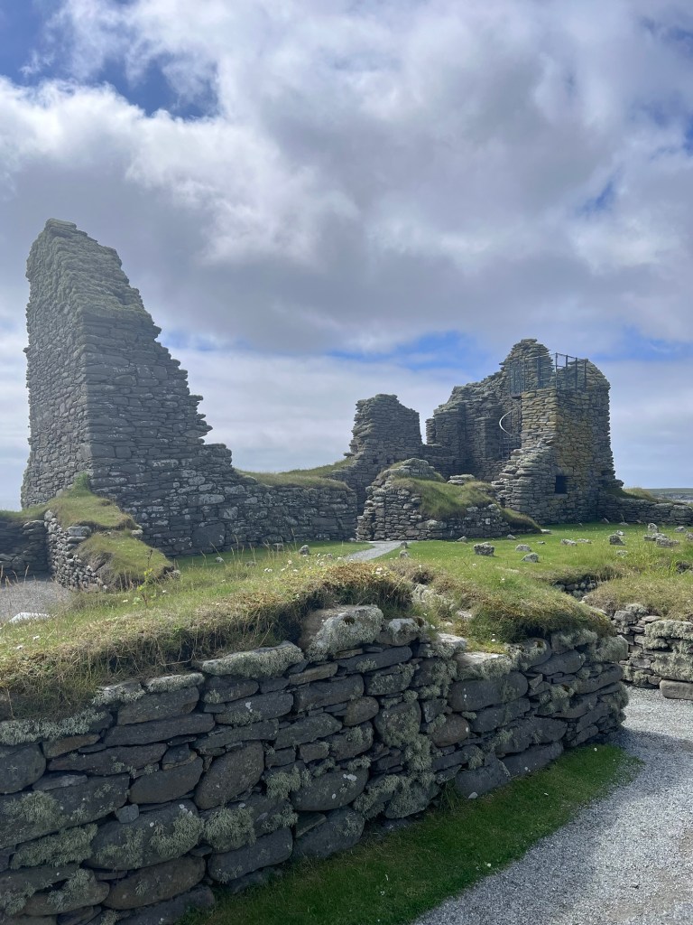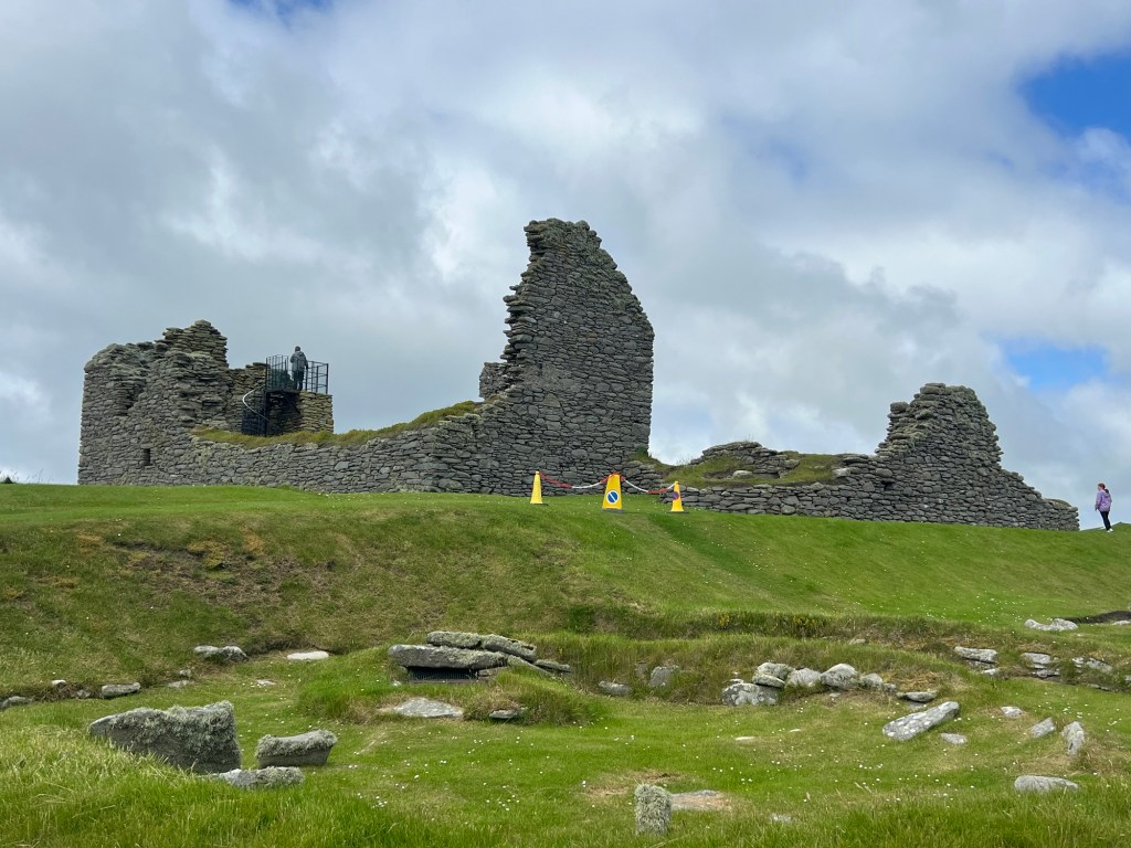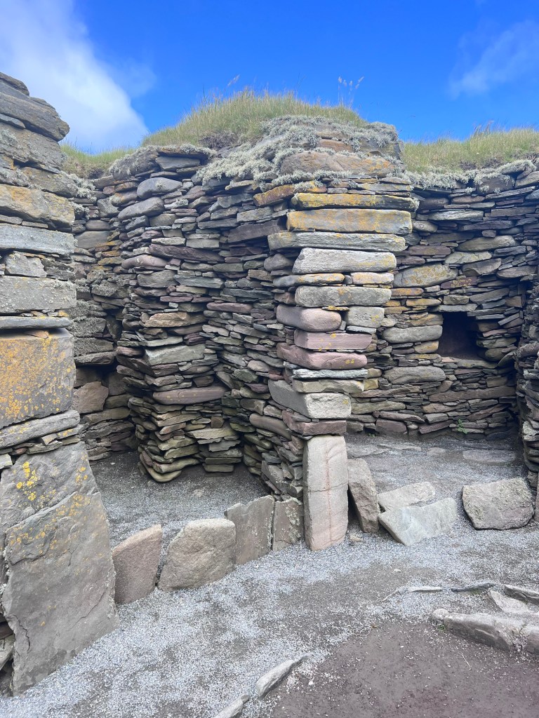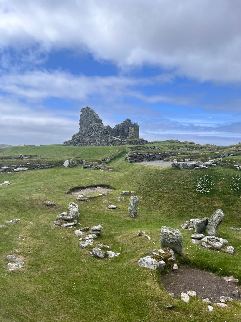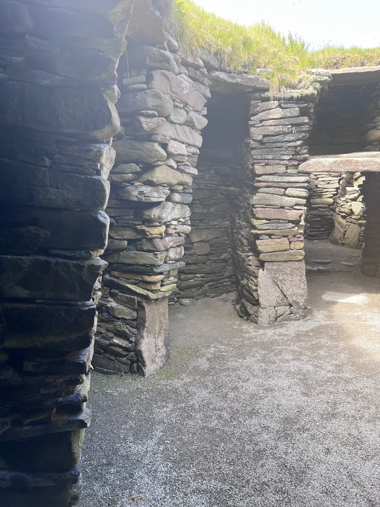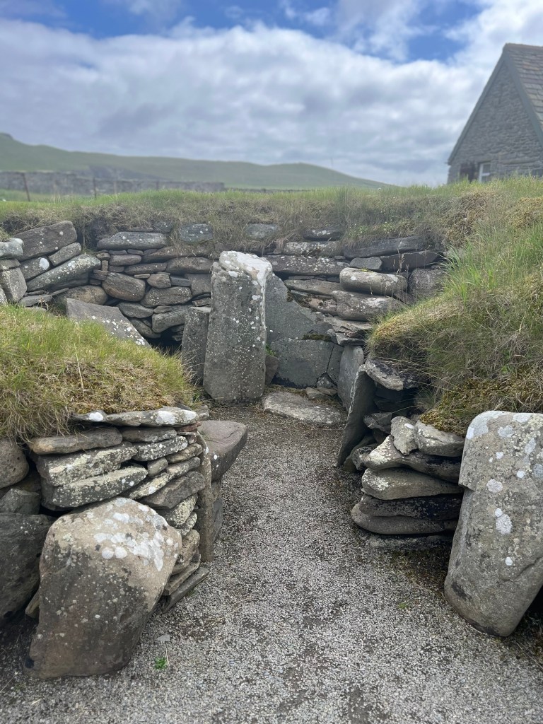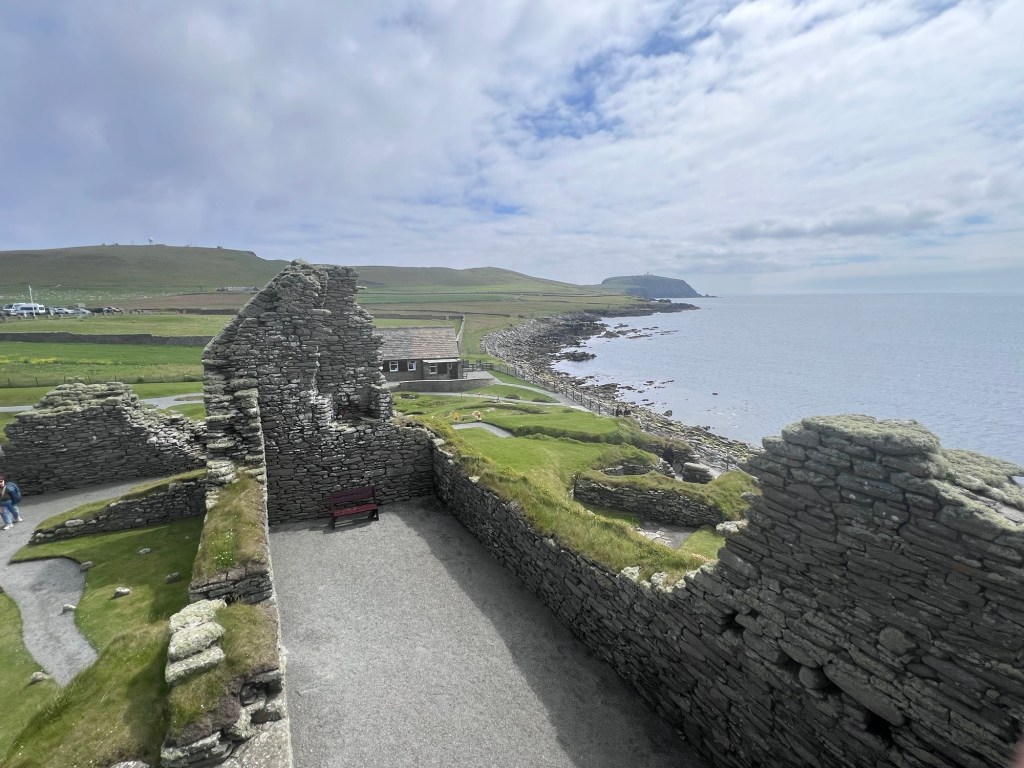 Our final stop was the Jarlshof Prehistoric and Norse Settlement. This site has a complex of ancient settlements which cover more than 4,000 years of human history. It was incredible to see such a range of archaeological treasures in one place, including late Neolithic houses, a Bronze Age village, an Iron Age broch and wheelhouses, a Norse longhouse, a medieval farmstead and a 16th century laird’s house. Seeing and walking through different settlements was awe inspiring.