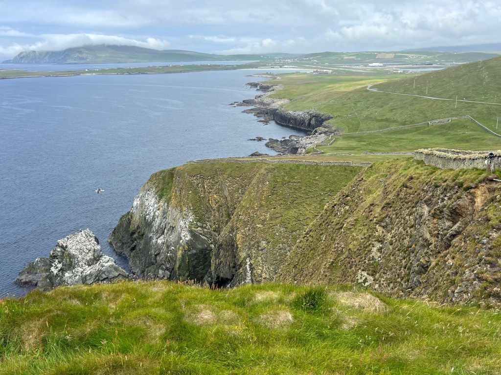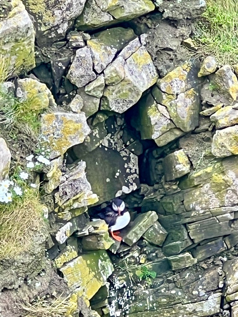 Next up was a visit to the towering cliffs of Sumbrugh Head, we were able to catch a glimpse of some puffins nesting in the rocks. At the top of the cliffs sat the Sumbrugh Lighthouse which was opened in 1821. During WW2 the lighthouse also served as was a Scottish radio station. Due to some early detection on the radios they helped secure defeats against Germans.